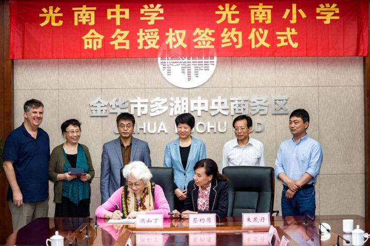 4月4日,人民音樂家施光南先生的夫人洪如丁女士和金東區(qū)政府簽訂授權(quán)書,多湖初中、多湖小學(xué)分別更名為光南中學(xué)、光南小學(xué),并均由金華市外國語學(xué)校托管,光南中學(xué)將掛牌金外合作學(xué)校,光南小學(xué)將掛牌金外附屬小學(xué)。