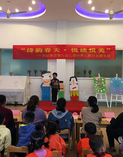 3月21日是世界兒歌日,為提高幼兒的語言發(fā)展水平,激發(fā)幼兒對詩歌朗誦的興趣,昨天下午,金華市實驗幼兒園教育集團(tuán)第九幼兒園的小朋友們開展了“詩韻春天•悅讀悅美”的世界兒歌日主題活動。