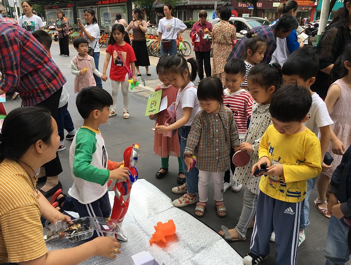 義賣活動通過大班組幼兒及家長參加擺賣,小、中組幼兒結對購買物品的方式開展,所有義賣物品均由幼兒的舊物、書籍、閑置文玩具及自制食品組成。通過義賣活動,孩子們知道廢舊物品可以再利用,愿意將自己的舊物與同伴分享、交換,懂得愛惜物品、珍惜資源。活動培養了幼兒樂于助人、樂于奉獻的品質,體驗奉獻帶來的快樂,激發從我做起、從身邊的每一件小事做起,把自己的愛奉獻給身邊每一個需要關愛的人。